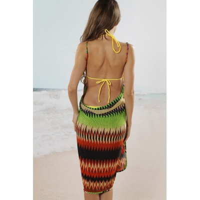 Modeli me vija gjeometrike e bën këtë model të fustanit me të vërtet unik. Është vërtet lehtë për ta veshur apo zhveshur.